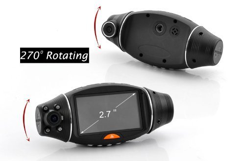 Questo ultra compatto per auto DVR è dotato di due telecamere che possono essere sia ruotato di 270 gradi, consentendo la registrazione di video ad alta definizione da due diverse angolazioni. La funzione di visione notturna anche in ambienti bui relativamente trasparente ti permette di fare registrazioni.