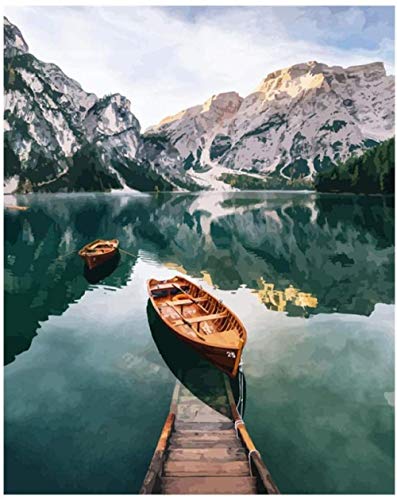DUANGONGZI Bambini Che disegnano la Barca del Lago di Montagna Paint by Numbers Kit di Pittura acrilica Fai da Te per bambiniAdulti Pittura per Principianti per Numero-No Frame-40X50CM