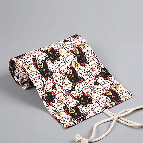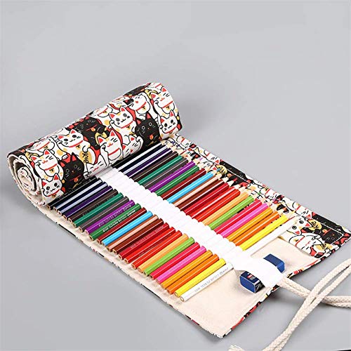 DUBENS - Astuccio per matite colorate, con fessure in tela, arrotolabile, portamatite da viaggio, per bambini e adulti, per disegnare, stampa con gatti, 48 fessure