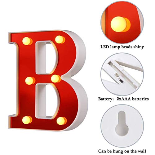 DUBENS - Luci LED con numero illuminato, luci notturne creative, luci a LED, lettere dell'alfabeto inglese, numeri, alfabeto, luci decorative, funzionamento a batteria, B