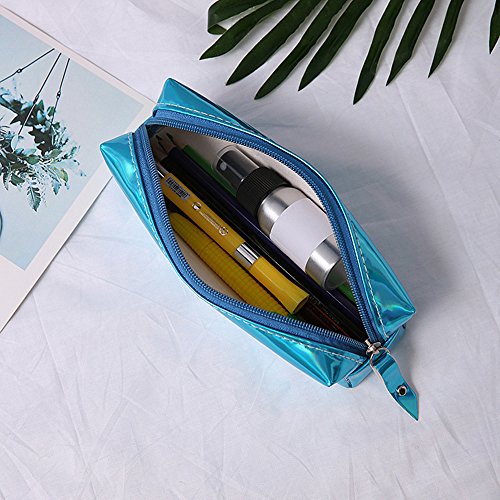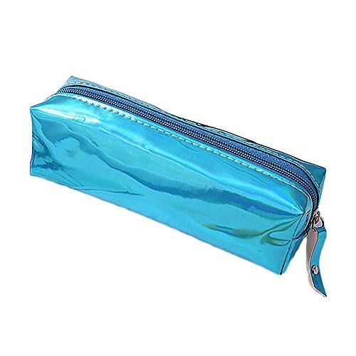 Dubens - Trousse per pennelli da trucco o astuccio per la scuola, effetto laser olografico, con chiusura lampo, colori: pastello Blu