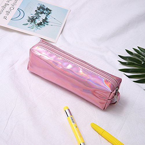 Dubens - Trousse per pennelli da trucco o astuccio per la scuola, effetto laser olografico, con chiusura lampo, colori: pastello Rosa