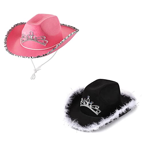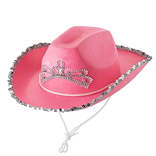 Dubute Cappello da cowgirl per ragazze e donne, con bordo in piuma, da discoteca, cappello da cowboy, accessorio per feste, Rosa e nero., Taglia unica