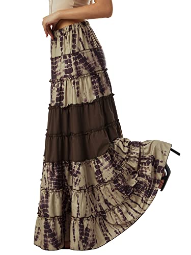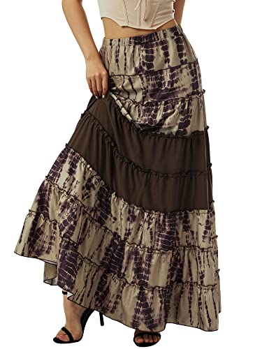 Dubute Gonna lunga da donna con stampa floreale Boemia in vita elasticizzata gonna lunga hippie gitana, Marrone, S