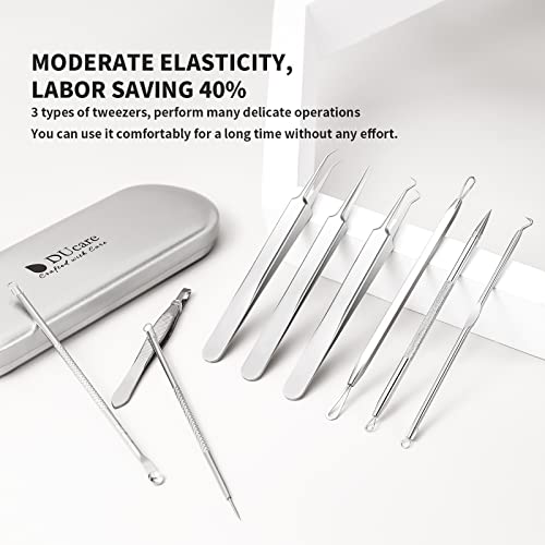 DUcare 9 pezzi strumento professionale per la rimozione di punti neri brufoli kit popper estrattore di punti neri pinzette per sopracciglia set di rimozione dell'acne punti bianchi brufoli incarniti