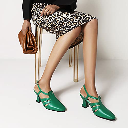 Ducarulan Donne Moda Estate Scarpe Punto chiuso Slingback Gladiator Sandali Tacco Blocco Festa Nozze Scarpe Mary Janes Heels Green Size 35