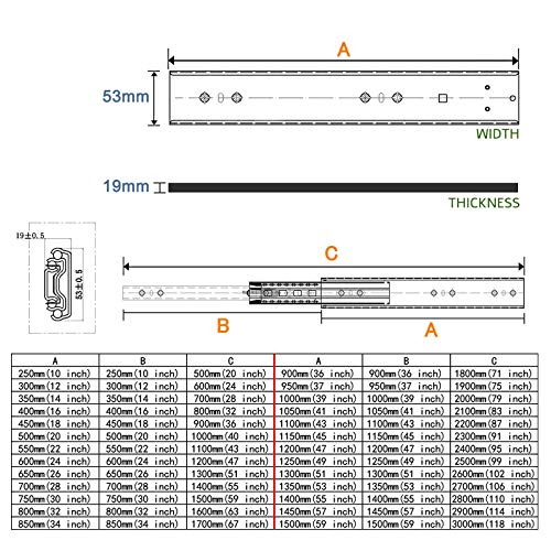 Duchunsheng Binari Cassetti Guide per Cassetti 30 40 50 60 80 100cm, Scorrevoli Guide per Cassetti Estrazione Totale, Cuscinetti A Sfera Pesanti, Cassetti Cucina Guida Telescopica con Blocca