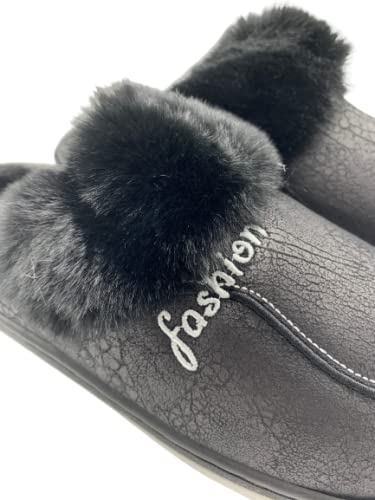 Ducomi Ciabatte Donna Invernali Ecopelle - Pantofole Comode con Morbida Ecopelliccia e Caldo Peluche Interno per la Casa, Scarpe Invernali Mocassini (Nero, 36/37)