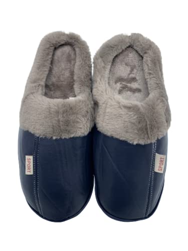 Ducomi Ciabatte Uomo Invernali Ecopelle - Comode Pantofole Inverno con Morbida Ecopelliccia e Caldo Peluche Interno per Casa, Scarpe Invernali Pelo (Navy, 42/43)