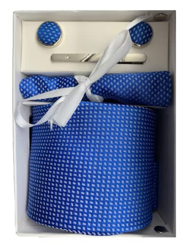Cofanetto regalo per Uomo composto da cravatta, coppia di gemelli, fazzolettino e fermacravatta - Confezionato in un elegante cofanetto bianco dal design impeccabile e spedito in un originale busta con logo