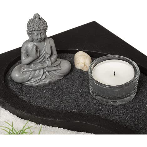 Ducomi Giardino Zen da Tavolo con Vassoio, Sabbia, Statuetta Buddha, Roccia - Idea Regalo Kit Meditazione Giapponese per Casa Arredamento Interni Decorazione (Arya)
