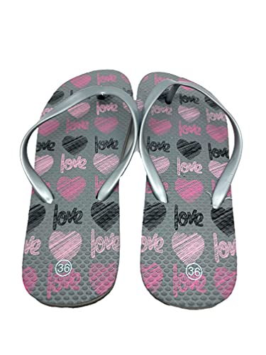 Ducomi Infradito Colorate in Gomma EVA Donna Ciabatte Donne Scarpe da Spiaggia Pantofole Estive da Bagno, Leggera Morbida Scarpa Estiva Mare (Grey Hearts, 39)