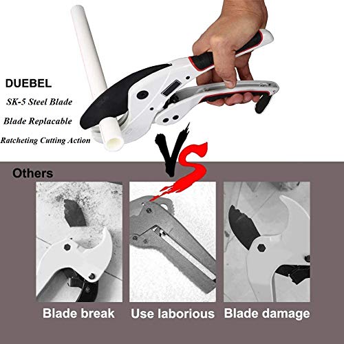 Fino a 2,5 pollici: Il tagliatubi DUEBEL è ideale per tagliare tubi e tubi in plastica, PVC PVC CPVC PE PEX PP PPR O.D. tubo in gomma e tubo multistrato. Capacità di taglio fino a 64 mm di diametro esterno.