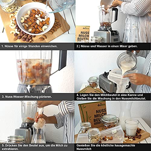 DuEco - 2 sacchetti per latte di noci naturali di canapa per latte di noci vegano, latte di mandorle, latte di nocciola, tessuto a maglia fine, panno filtrante per succo di frutta e caffè