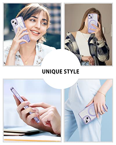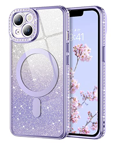 DUEDUE Cover per iPhone 14 6.1"[Compatibile con MagSafe], Custodia per iPhone 14 Case Scintillante Sottile Lucida TPU Silicone Anti-Scivolo, Ricarica Magnetica Wirelesse, Gradiente Viola