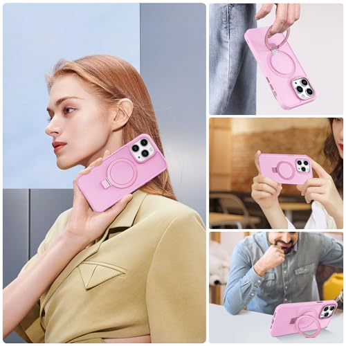 DUEDUE Cover Magnetica per iPhone 14 Pro 6.1"[Compatibile con MagSafe], Custodia per iPhone 14 Pro Case con Supporto Pieghevole ad anello, Sottile TPU Silicone Anti-Scivolo, Rosa