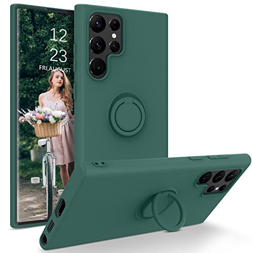 DUEDUE Cover per Samsung Galaxy S22 Ultra 6.8", Custodia per Samsung S22 Ultra Case con Supporto Anello e un Cordino, Morbido Silicone Liquido Anti-scivolo, Cover per Galaxy S22 Ultra, Verde Oliva