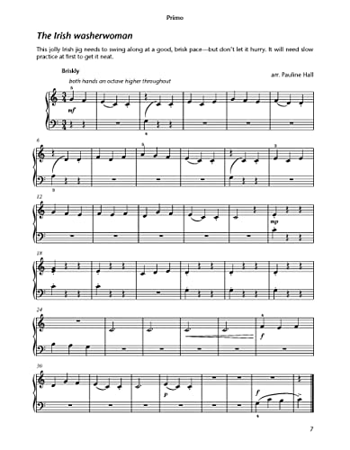 Duets with a Difference Piano Time Duets Book 1 contains 16 fun duets to play with a friend or teacher in a wide variety of styles, from jazz to classical, and folk to blues! Easy duets that sound really impressive! Duets with a difference is filled with music from an array of styles: classical, traditional, contemporary, and fun original compositions by Pauline Hall and friends, such as ?Swinging fingers?, ?The Irish washerwoman?, ?Royal procession? and ?Blues for two?, arranged for beginner