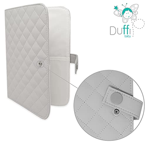 Duffi Baby Custodia Porta Documenti per Neonato in Similpelle con Chiusura a Scatta Porta Libro Nascita con Tasche Cartella portadocumenti Misura Standard Modello Lux Colore Grigio