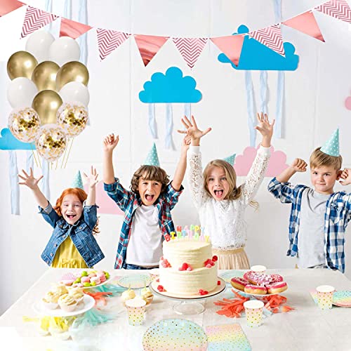 【Forniture per feste per 16 ospiti】 Questo set per feste colorato include: 1 gagliardetto + piatto da 40,6 x 22,9 cm + piatto da dessert 40,6 x 17,8 cm + 40,6 x 22,9 gram tazza di carta + 16 x tovagliolo + 16 x cannuccia + 1 x tovaglia + 4 x 10 palloncino in metallo dorato pollici + palloncino coriandoli 4x12 pollici + palloncino in lattice bianco 8x10 pollici + palloncino rosa 4x10 pollici + 1x nastro dorato + 100 punti di attacco del palloncino.