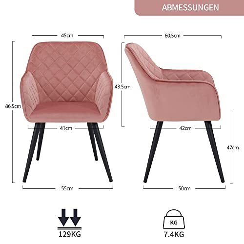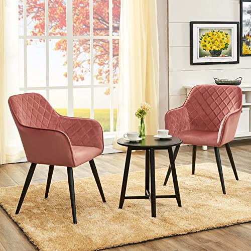 Duhome Poltrona Sala da Pranzo Velluto, Poltrona con Schienale Gambe in Metallo Sedia da Pranzo Design Retrò Sedia da Trucco per Toletta Soggiorno Camera da Letto, Rosa