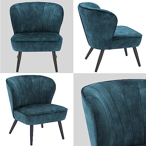 Duhome sedia imbottita poltrona lounge design retro con piedini in metallo 8103B, colore:blu, materiale:velluto vintage