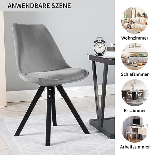 Duhome Set di 2 Sedia da Sala da Pranzo Design Retro con Cuscino Stil scandinavo con Piedini in Legno 518M, Colore:Grigio, Materiale:Velluto