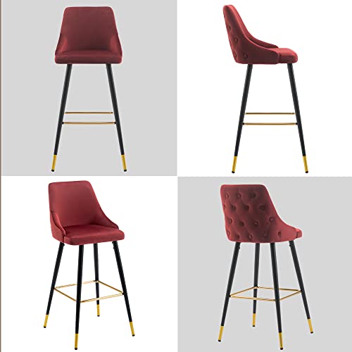 Duhome 2x Sgabelli da bar tessuto (velluto) quadrato con schienale piedini in metallo selezione colore 5170G, colore:rosso, materiale:velluto