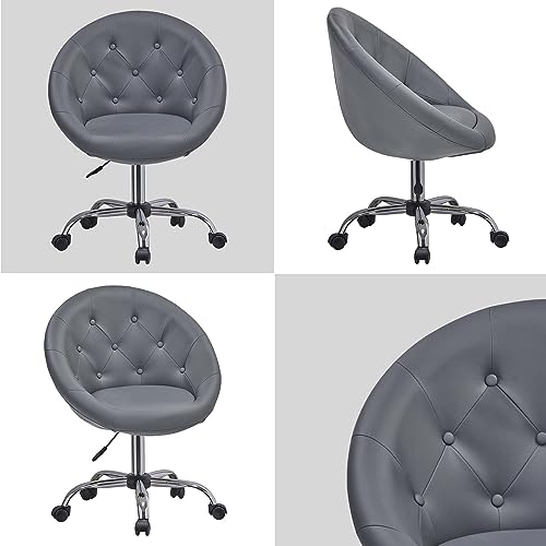 Duhome Sgabello Girevole Similpelle Sedia Scrivania da Ufficio Girevole Regolabile in Altezza Sgabello con Ruote Schienale Selezione del Colore 509B, colore:grigio, materiale:similpelle