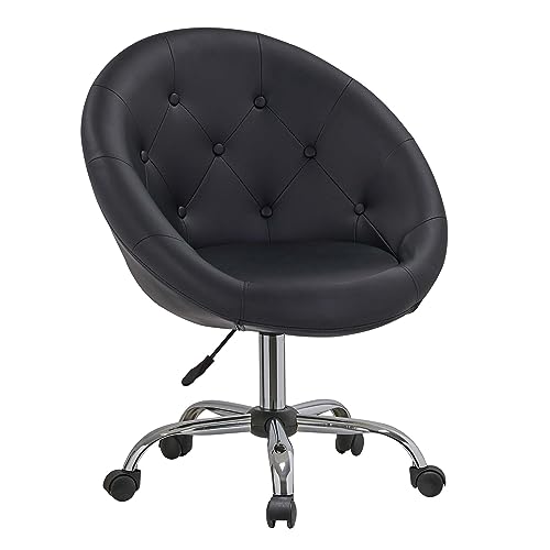 Duhome Sgabello Girevole Similpelle Sedia Scrivania da Ufficio Girevole Regolabile in Altezza Sgabello con Ruote Schienale Selezione del Colore 509B, colore:nero, materiale:similpelle
