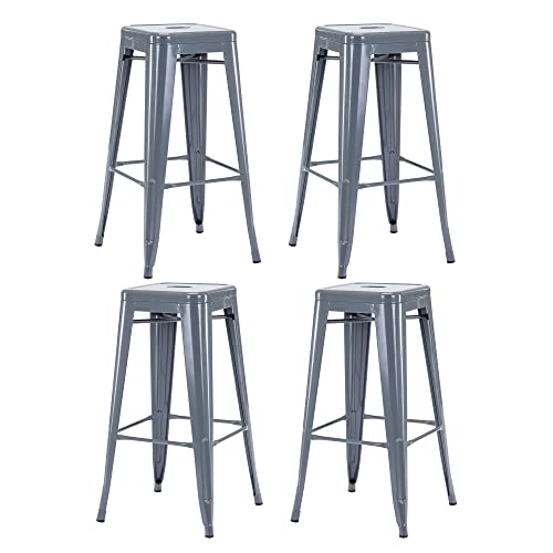 Duhome 4x Sgabello da bar in metallo nero impilabile altezza del sedile 77 cm robusto e intramontabile selezione colore 665D, colore:grigio, materiale:metallo