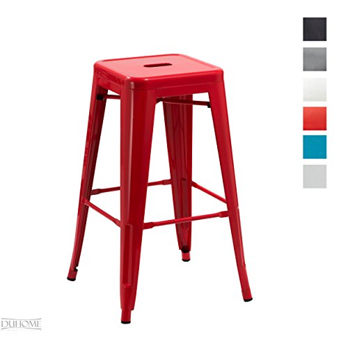 Duhome 1 Sgabello da Bar in Metallo Nero impilabile Altezza del Sedile 77 cm Robusto e intramontabile Selezione Colore 665D, Colore:Rosso, Materiale:Metallo