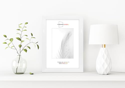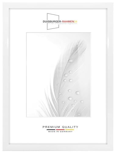 Duisburger-Rahmen24 DR24 Cornice 25x35 (Bianco Lucido) su Misura, Telaio in Legno MDF Largo 35 mm Incluso Vetro Sintetico antiriflesso, Parete Posteriore Stabile, perni da Piegatura e Ganci
