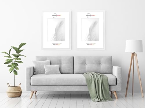La moderna cornice è dotata di una lastra di vetro sintetico antiriflesso infrangibile (spessore di circa 1 mm), una robusta parete posteriore in legno MDF e due ganci per il montaggio a parete in formato verticale o orizzontale - ATTENZIONE NOTA: Offerta SENZA passe-partout e fogli inserto