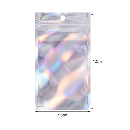 Dulau 100 Pezzi Borse con Chiusura a Zip, Sacchetti Anti-Odore Richiudibili Sacchetti in Alluminio Sacchetti Anti-Odore Olografici, per Caramelle, Gioielli, Viti, Saponi (7,5 x 12 cm)