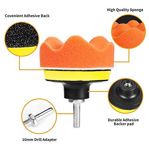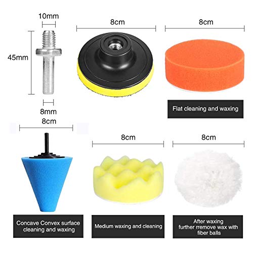 Facile da usare: La parte posteriore dei tamponi per lucidatura dell'auto ha un design in velcro, che lo rende più facile da usare, e i tamponi per lucidare l'auto possono essere sostituiti in pochi secondi. Può essere utilizzato in smerigliatrice angolare, trapano a batteria o altre lucidatrici elettriche.