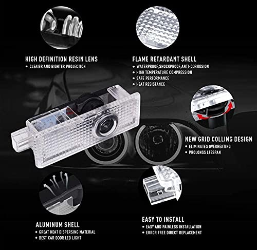Questa luce di benvenuto senza foratura, senza nuovo cablaggio, senza smontaggio, senza danni al veicolo, mostra una lampada di proiezione o un motivo nella porta aperta di un veicolo sul pavimento, si spegne automaticamente dopo la chiusura della porta.