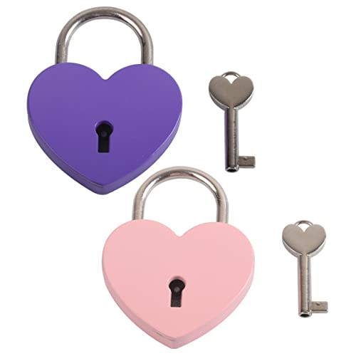 DULSPUE Lucchetto Colorato con Chiavi - Lucchetto Piccolo - 2Pcs Piccolo Lucchetti per Bagagli a Forma di Cuore, Lucchetti Squisiti per Valigie, Zaini da Viaggio(Viola/Rosa)