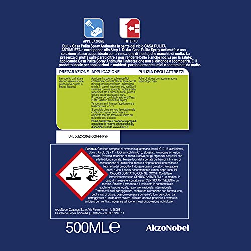 Dulux Casa Pulita, Spray Antimuffa Igienizzante per Interni, inodore Pronto Uso 500 ML, Incolore