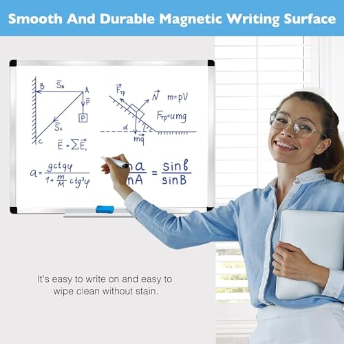 DumanAsen Lavagna magnetica bianca cancellabile a secco, lavagna magnetica a doppio lato, cornice sottile in alluminio argentato, con 4 pennarelli a punta fine e 1 gomma (57 cm x 42 cm)