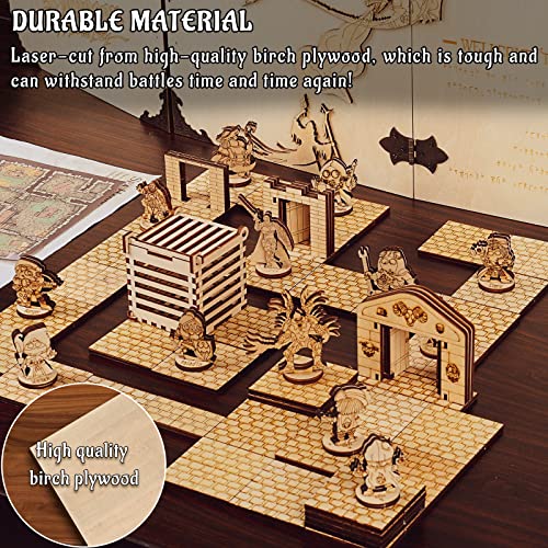 Dungeon Stone Piastrelle quadrate per pavimento, in legno, tagliate al laser, griglia modulare da 2,5 cm, perfette per Dungeons & Dragons, Pathfinder e altri tavoli RPG