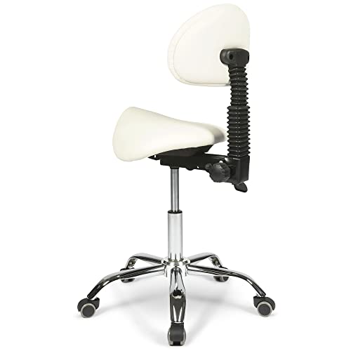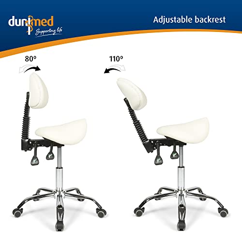 Dunimed Sgabello Ergonomico con Schienale - Professionale Rirevole, Regolabile in Altezza, per Clinica, Salone di bellezza, Casa, Ufficio - Colore Bianca