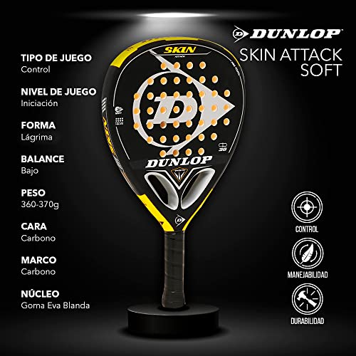 Dunlop Skin Attack Soft + Custodia Racchetta Padel Siux | Racchetta Padel Power in Fibra di Carbonio e Gomma EVA Soft + Borsa/Zaino Padel porta Racchetta Siux - Racchetta Padel Uomo, Livello Avanzato