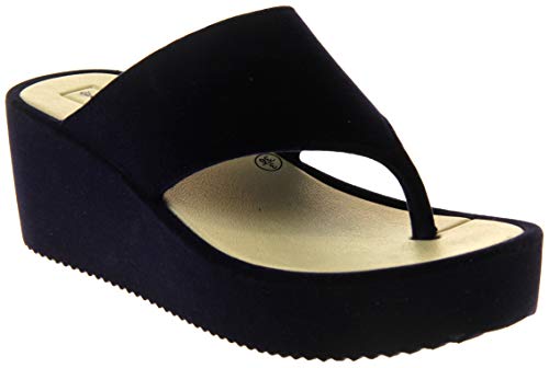 Dunlop Donna Sandali con Zeppa con Plateau in Velour Navy Blu EU 41