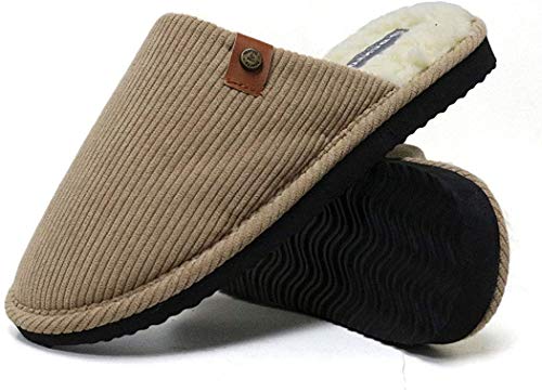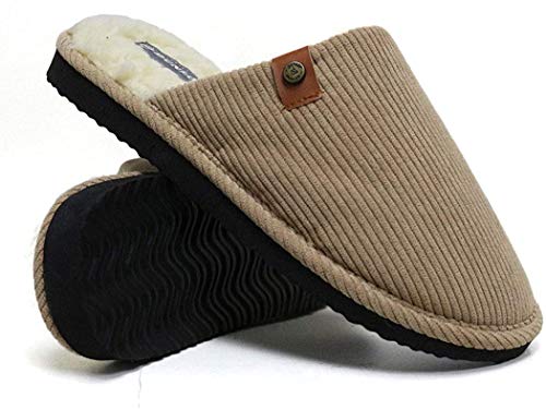 Dunlop, pantofole da uomo, in finta pelliccia di pecora, con memory foam, Beige (Beige), 43 EU