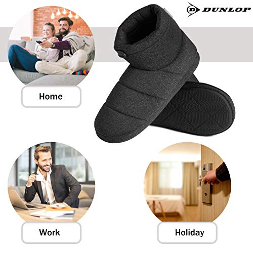 DUNLOP Pantofole Uomo Invernali a Stivaletto per Casa Calda Memory Foam (45, Nero, numeric_45)