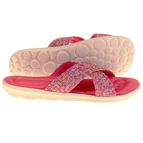 Dunlop Sandali da donna a doppio tessuto, comodi infradito in memory foam da donna, per le vacanze, essenziali, alla moda, taglia 39-40, colore: blu, nero e rosa, rosa, 38 EU