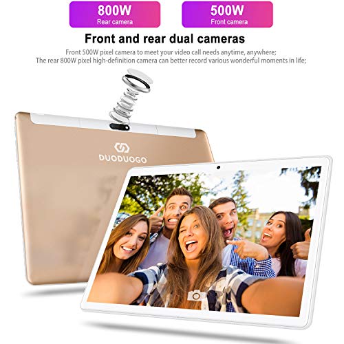 DUODUOGO Tablet 10 Pollici Android 13, Tablets 8GB RAM+64GB ROM/256 GB Espandibile, 5+8MP Dual SIM Tablet Pc Quad core 8000mAh/WIFI/Bluetooth/GPS/Type-C, Oro