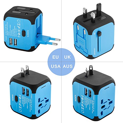 Duomishu, adattatore da viaggio USB, caricabatteria con due porte USB, impiegabile universalmente in 150 Paesi: USA, Regno Unito, UE, Australia, ecc.