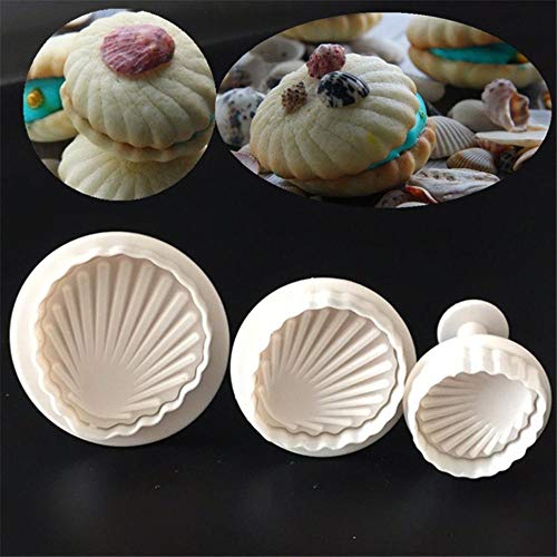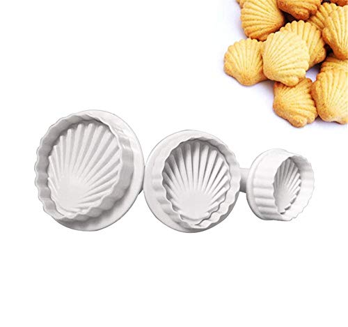 DUORUI 3 stampi per biscotti a stantuffo per biscotti e fondente in plastica per bambini, strumento di cottura fai da te per decorare conchiglie